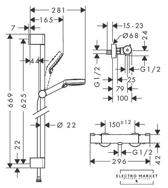 душевой гарнитур, настенный монтаж
