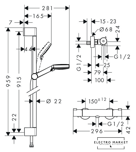 душевой гарнитур, настенный монтаж, отсутствует смеситель