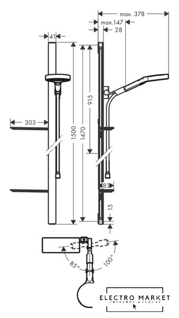 душевой гарнитур, настенный монтаж, отсутствует смеситель