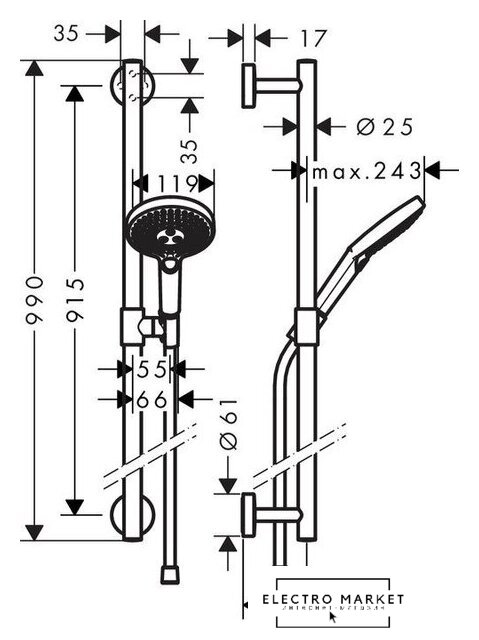 | Комплектация | штанга, ручной душ (лейка), держатель лейки, шланг |