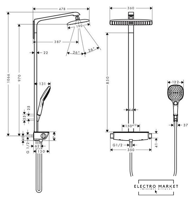 | Серия | Raindance Select E 360 1jet (Hansgrohe) |