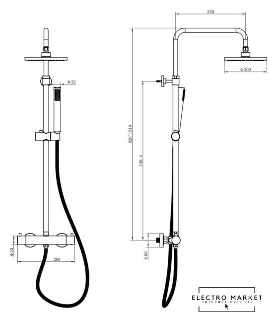 | Диаметр (ширина) верхнего душа | 200 мм |