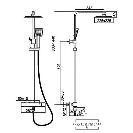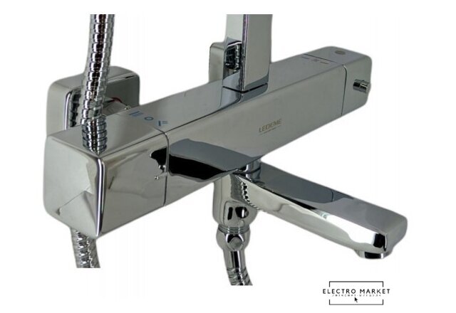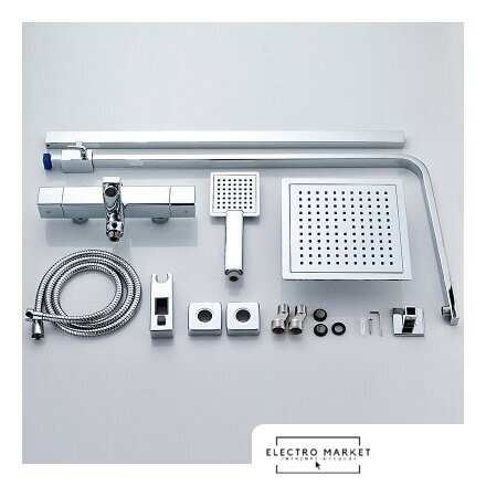 Комплектация | верхний душ, штанга, ручной душ (лейка), держатель лейки, шланг, смеситель, излив для ванны |