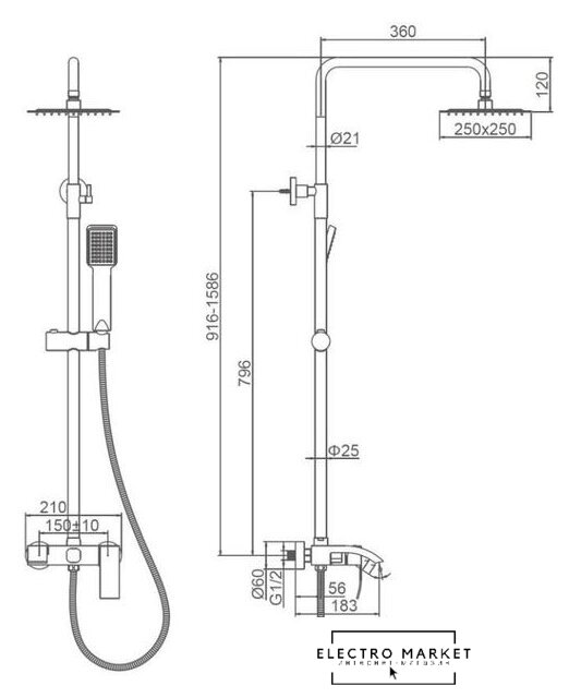 душевая система (с верхним душем), настенный монтаж, механический смеситель, верхний душ 260 мм, ручной душ