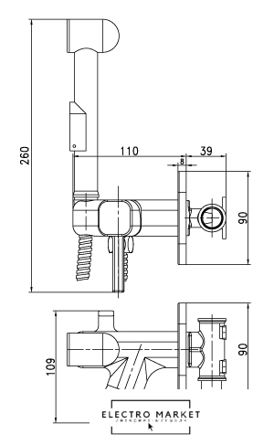 однорычажный смеситель для биде/для скрытого монтажа, монтаж на стену