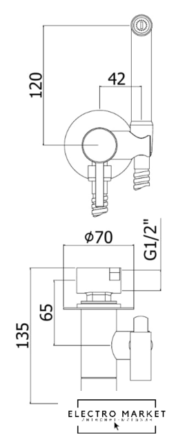 душевая система (205 мм), настенный монтаж, вентиль смеситель