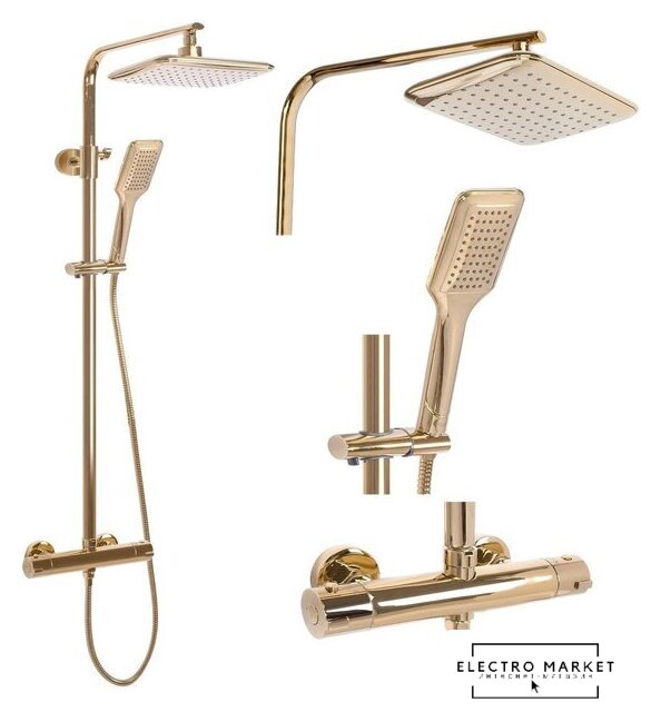 душевая система (с верхним душем), настенный монтаж, термостатический смеситель, верхний душ 200 мм, ручной душ