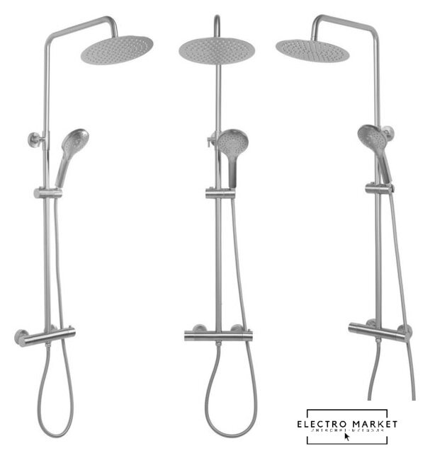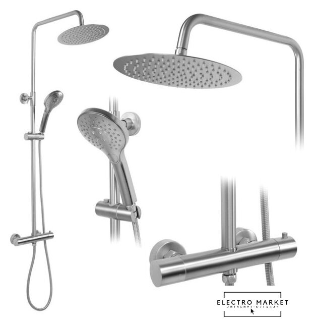 душевая система (с верхним душем), настенный монтаж, термостатический смеситель, верхний душ 250 мм, ручной душ 80 мм