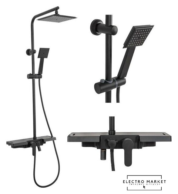 душевая система (с верхним душем), настенный монтаж, механический смеситель, верхний душ 200 мм, ручной душ 102 мм