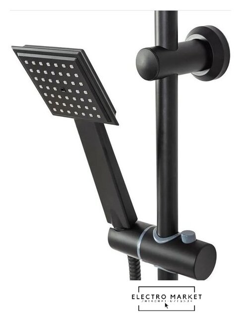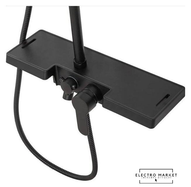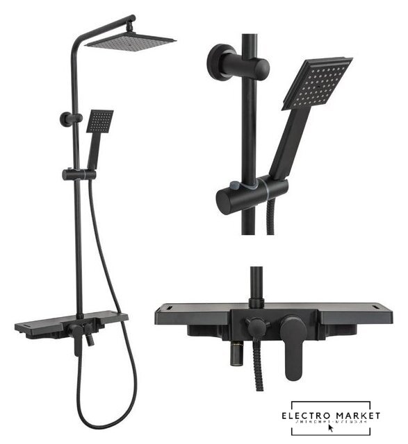 | Комплектация | верхний душ, штанга, ручной душ (лейка), держатель лейки, шланг, смеситель, излив для ванны, полочка |