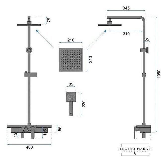 | Диаметр (ширина) верхнего душа | 210 мм |