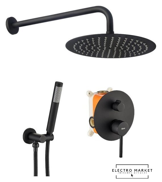 душевая система (с верхним душем), скрытый монтаж, механический смеситель, верхний душ 300 мм, ручной душ 24 мм