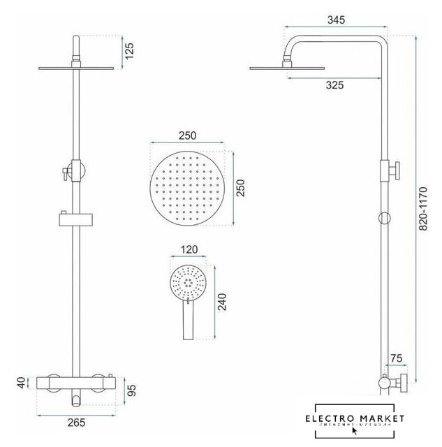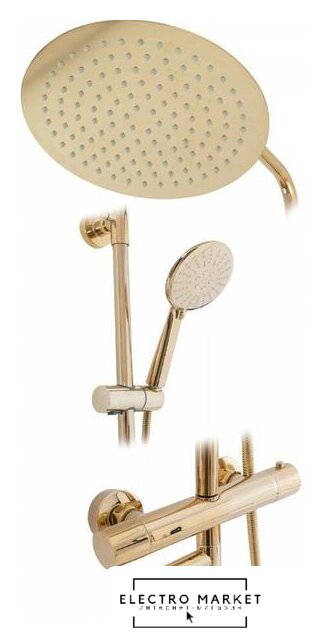 душевая система (с верхним душем), настенный монтаж, термостатический смеситель, верхний душ 250 мм, ручной душ 100 мм