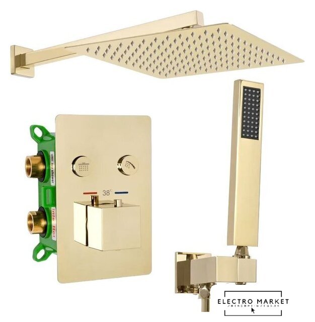 душевая система (с верхним душем), настенный монтаж, термостатический смеситель, верхний душ 250 мм, ручной душ 80 мм
