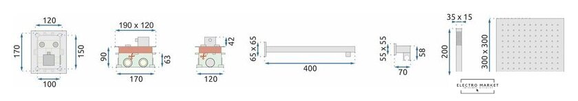 | Диаметр (ширина) верхнего душа | 300 мм |