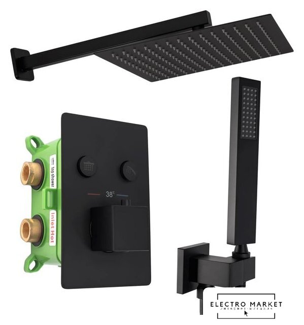 душевая система (с верхним душем), скрытый монтаж, термостатический смеситель, верхний душ 300 мм, ручной душ