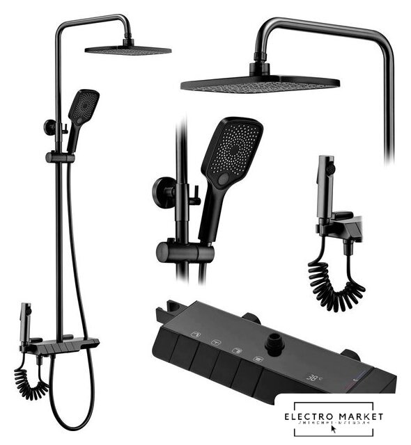Комплектация | верхний душ, штанга, ручной душ (лейка), держатель лейки, шланг, смеситель, каскадный излив, гигиенический душ (лейка) |