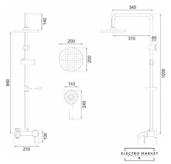 | Диаметр (ширина) верхнего душа | 200 мм |