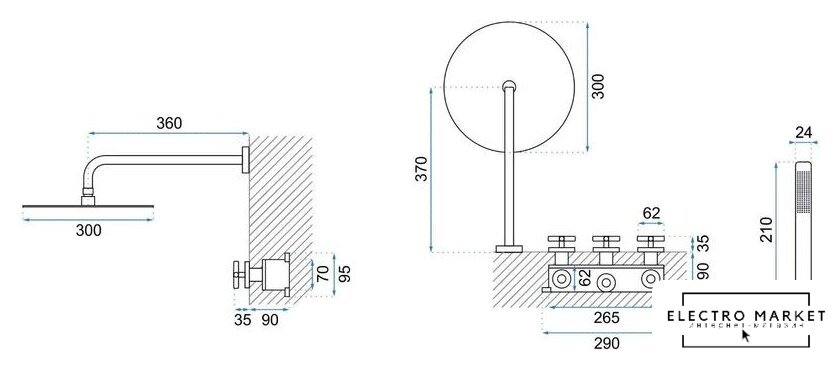 душевая система (250 мм), скрытый монтаж, механический смеситель