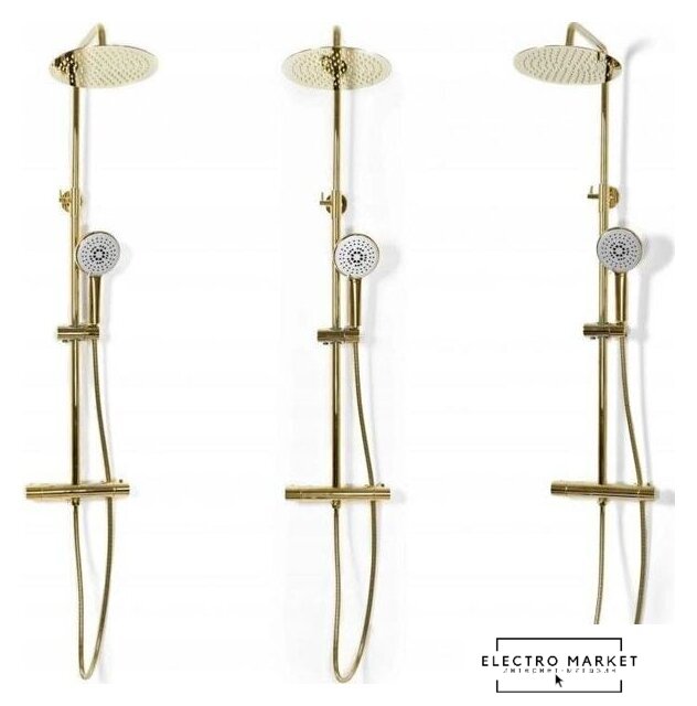 душевая система (с верхним душем), настенный монтаж, термостатический смеситель, верхний душ 228 мм, ручной душ 120 мм