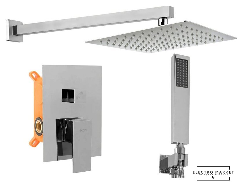 душевая система (с верхним душем), скрытый монтаж, механический смеситель, верхний душ 300 мм, ручной душ 35 мм