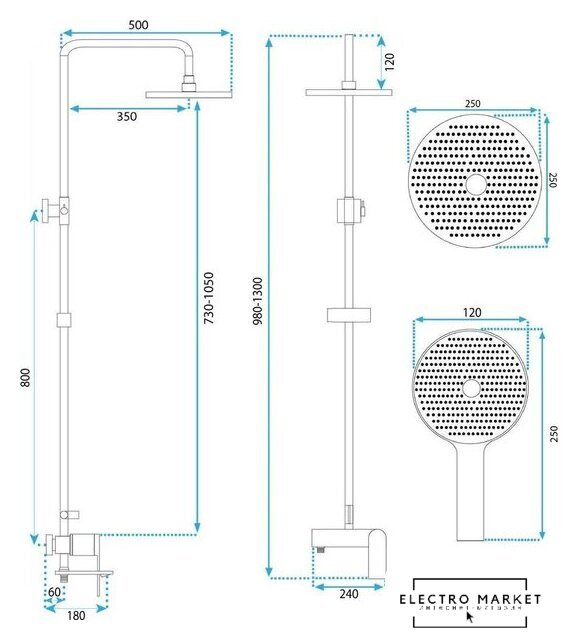 | Форма верхнего душа | круглая |