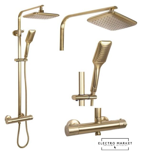 душевая система (с верхним душем), настенный монтаж, термостатический смеситель, верхний душ 250 мм, ручной душ 80 мм