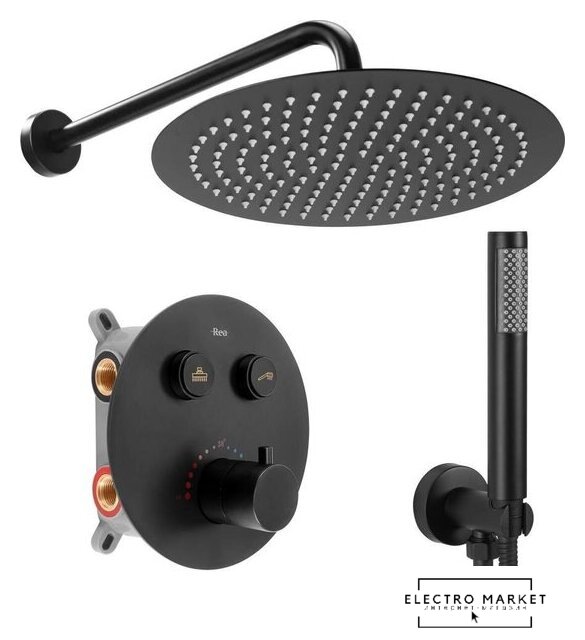 душевая система (с верхним душем), настенный/на ванну или полку монтаж, термостатический смеситель, верхний душ, ручной душ
