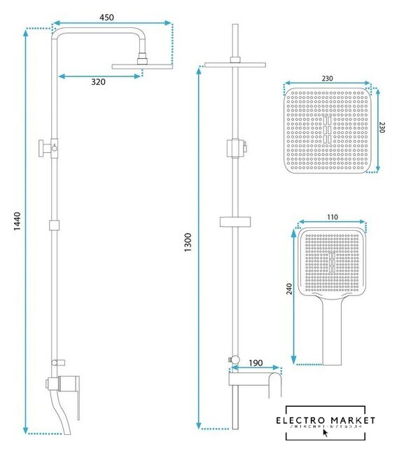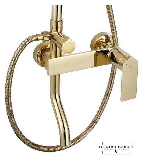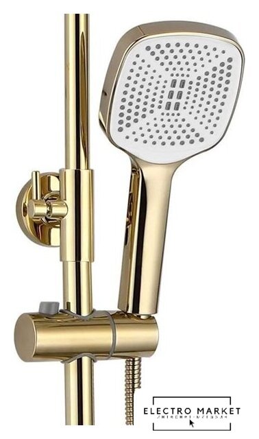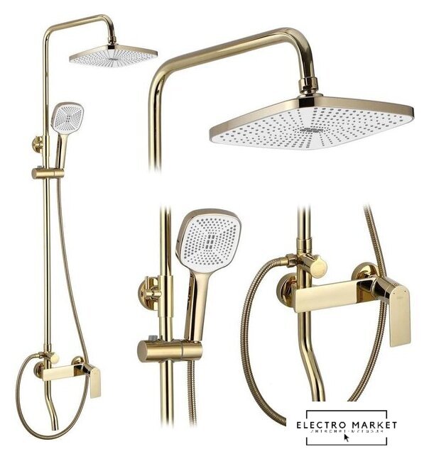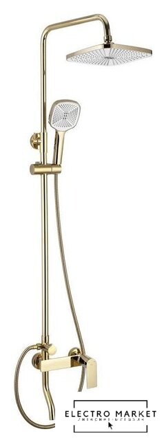 | Комплектация | верхний душ, ручной душ (лейка), держатель лейки, шланг, смеситель, излив для ванны |