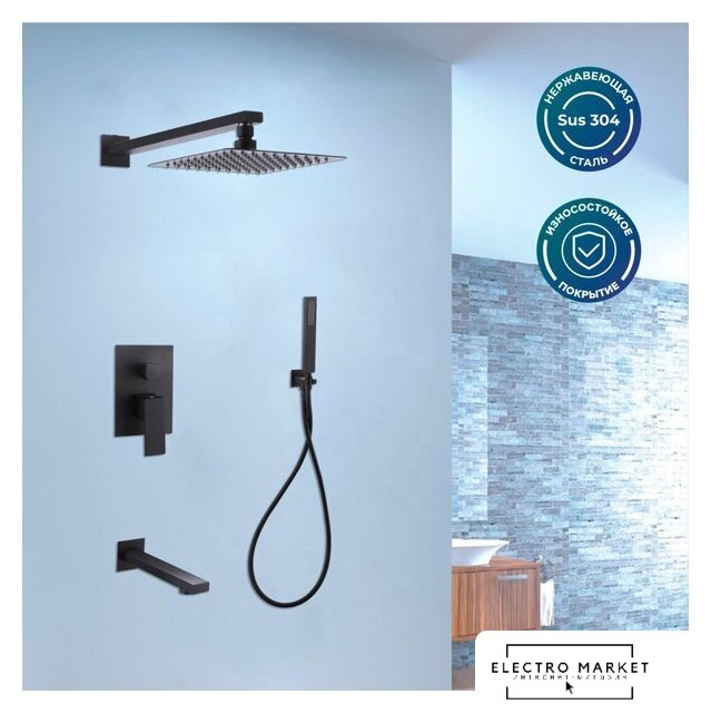 Комплектация | верхний душ, ручной душ (лейка), держатель лейки, смеситель |