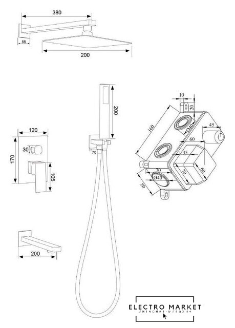 Диаметр (ширина) верхнего душа | 200 мм |