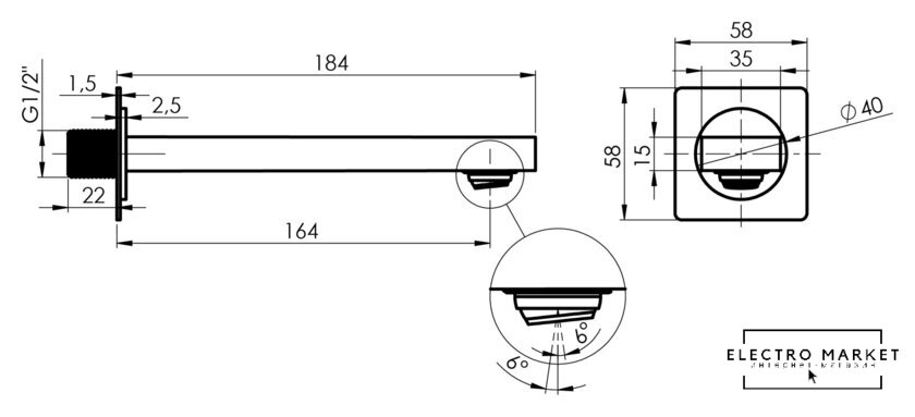 душевая система (250 мм), настенный монтаж, термостатический смеситель