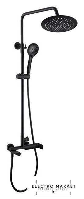 Комплектация | верхний душ, штанга, ручной душ (лейка), держатель лейки, шланг, смеситель, излив для ванны |
