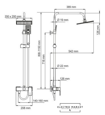 | Диаметр (ширина) верхнего душа | 200 мм |