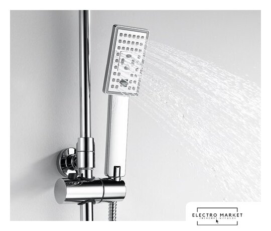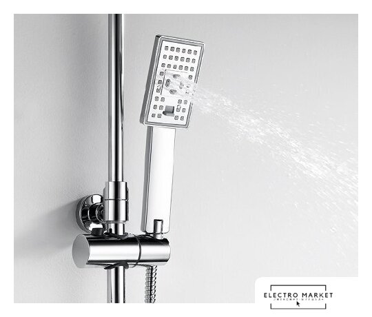 | Комплектация | верхний душ, штанга, ручной душ (лейка), держатель лейки, шланг, смеситель |
