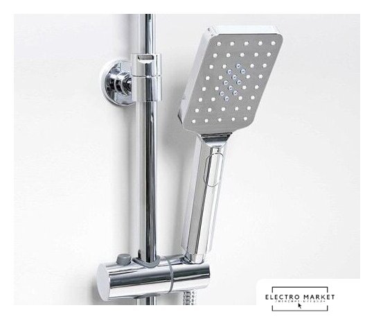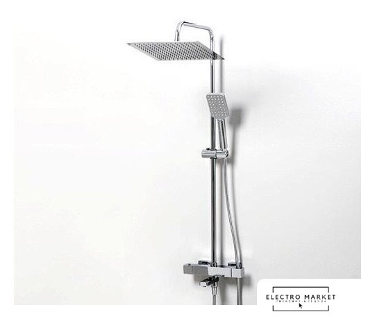 душевая система (с верхним душем), настенный монтаж, термостатический смеситель, верхний душ 200 мм, ручной душ 27 мм