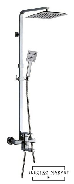 Комплектация | верхний душ, штанга, ручной душ (лейка), держатель лейки, шланг, смеситель, излив для ванны |