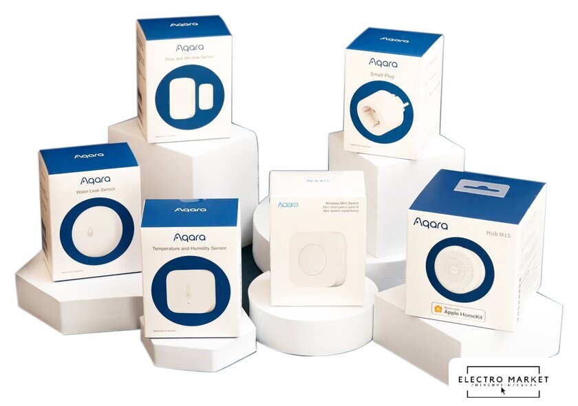 | Комплектация | Центр умного дома Aqara Hub M1S (EU)Датчик протечки Aqara Water Leak SensorДатчик температуры и влажности Aqara Temperature and Humidity SensorДатчик открытия дверей и окон Aqara Door and Window SensorБеспроводная кнопка Aqara Wireless Mini SwitchAqara Smart Plug | Умная розетка |