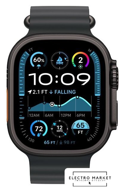 синхронизация с iOS, экран OLED, поддержка SIM-карты: нет, пульсометр, измерение кислорода в крови, ЭКГ, AOD, GPS, Bluetooth 5.3, корпус: металл (алюминий), ремешок: силикон