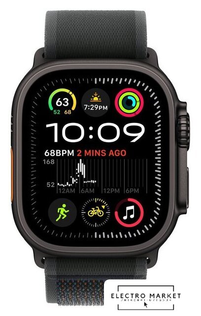 синхронизация с iOS, экран OLED, поддержка SIM-карты: нет, пульсометр, измерение кислорода в крови, ЭКГ, AOD, GPS, Bluetooth 5.3, корпус: металл (алюминий), ремешок: ткань