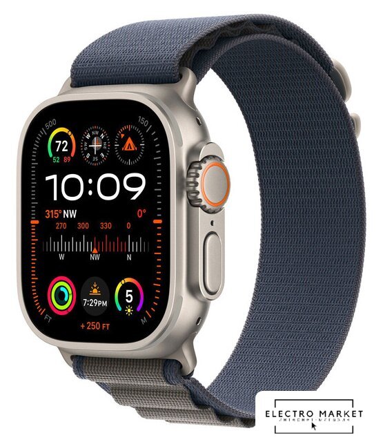 синхронизация с iOS, экран OLED, поддержка SIM-карты: e-SIM, пульсометр, измерение кислорода в крови, ЭКГ, AOD, GPS, Bluetooth 5.3, корпус: металл (титан), ремешок: ткань