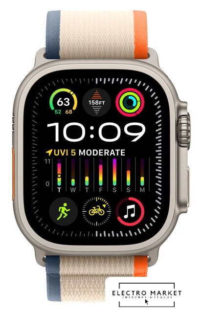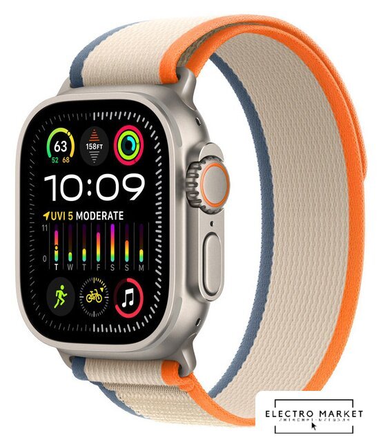 синхронизация с iOS, экран OLED, поддержка SIM-карты: e-SIM, пульсометр, измерение кислорода в крови, ЭКГ, AOD, GPS, Bluetooth 5.3, корпус: металл (титан), ремешок: ткань