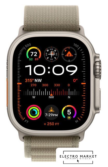 синхронизация с iOS, экран OLED, поддержка SIM-карты: e-SIM, пульсометр, измерение кислорода в крови, ЭКГ, AOD, GPS, Bluetooth 5.3, корпус: металл (титан), ремешок: ткань