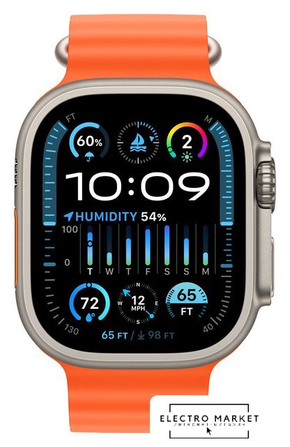 синхронизация с iOS, экран OLED, поддержка SIM-карты: e-SIM, пульсометр, измерение кислорода в крови, ЭКГ, AOD, GPS, Bluetooth 5.3, корпус: металл (титан), ремешок: ткань