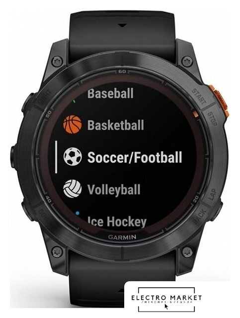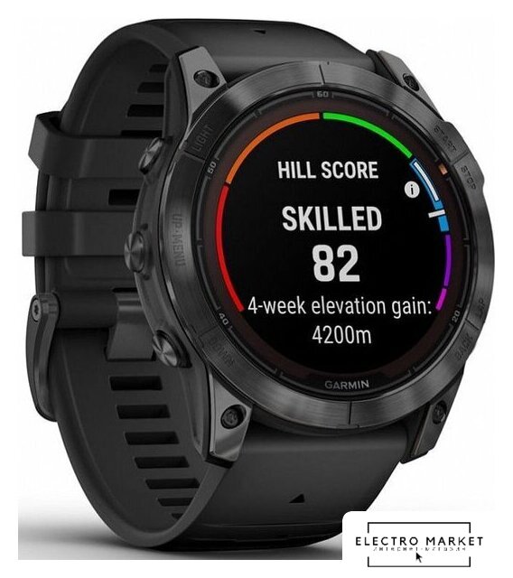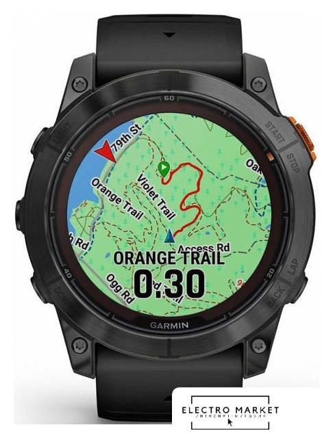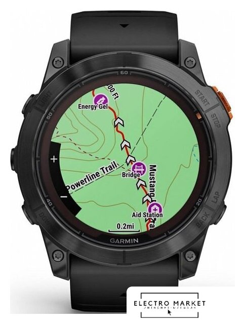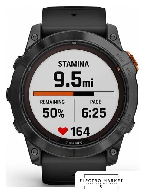 Профессиональные функции | анализ тренировочной нагрузки (Training Load/Training Load Focus), измерение частоты шага (Cadence), измерение длины шага (Stride Length), измерение времени контакта с землей (Ground Contact Time), измерение показателя уровня сложности трассы (Grit), измерение поддержки постоянной скорости (Flow), измерение состояния выносливости (Performance Condition), контроль темпа бега (Pace/PacePro), расчет кардиореспираторной подготовленности (VO2 Max), расчет времени восстановления (Recovery Time), расчет готовности к тренировке (Body Battery), расчет статуса вариабельности сердечного ритма (HRV), расчет прогресса тренировки (Training Status), расчет тренировочного эффекта (Training Effect), расчет тренировочного эффекта при плавании (SWOLF), построение обратных маршрутов (Tracback), прогноз времени гонки (Race Time Prediction), отображение уклона и усиления высоты подъема (ClimbPro Ascent Feature), оценка функциональной пороговой мощности (FTP), фиксация порога лактата/усталости (Lactate Threshold), фиксация отклонений на каждом шаге во время бега (Vertical Oscillation), данные о приливах, профили для виндсерфинга и кайтсерфинга, карты популярных маршрутов (Trendline), карты лыжных трасс (Resort Ski Maps) |