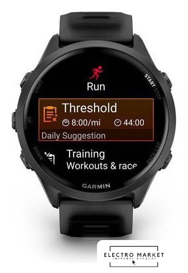 Профессиональные функции | анализ тренировочной нагрузки (Training Load/Training Load Focus), измерение частоты шага (Cadence), измерение длины шага (Stride Length), измерение времени контакта с землей (Ground Contact Time), контроль темпа бега (Pace/PacePro), расчет кардиореспираторной подготовленности (VO2 Max), расчет времени восстановления (Recovery Time), расчет готовности к тренировке (Body Battery/Readiness), расчет статуса вариабельности сердечного ритма (HRV), расчет прогресса тренировки (Training Status), расчет тренировочного эффекта (Training Effect), расчет тренировочного эффекта при плавании (SWOLF), построение обратных маршрутов (Tracback), прогноз времени гонки (Race Time Prediction), отображение уклона и усиления высоты подъема (ClimbPro Ascent Feature) |