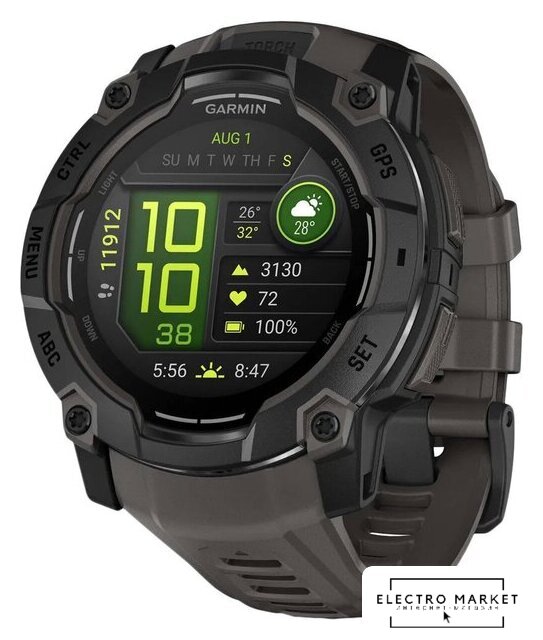 синхронизация с Android/iOS, экран Memory LCD (MIP) 1.1" x 1.1", поддержка SIM-карты: нет, пульсометр, измерение кислорода в крови, GPS, корпус: пластик/металл (алюминий), ремешок: силикон