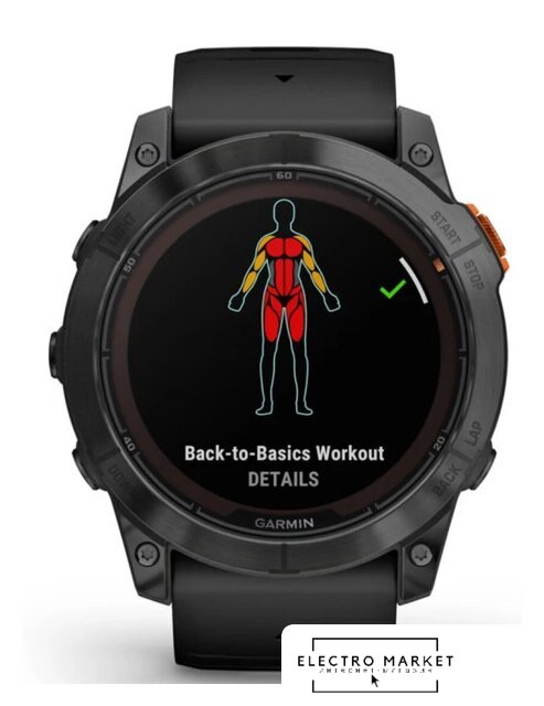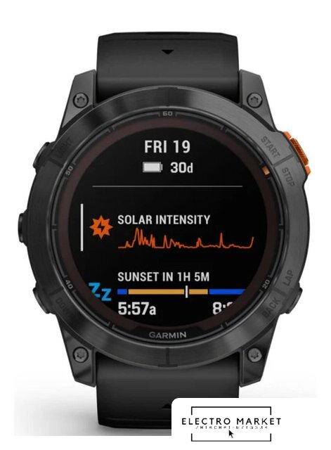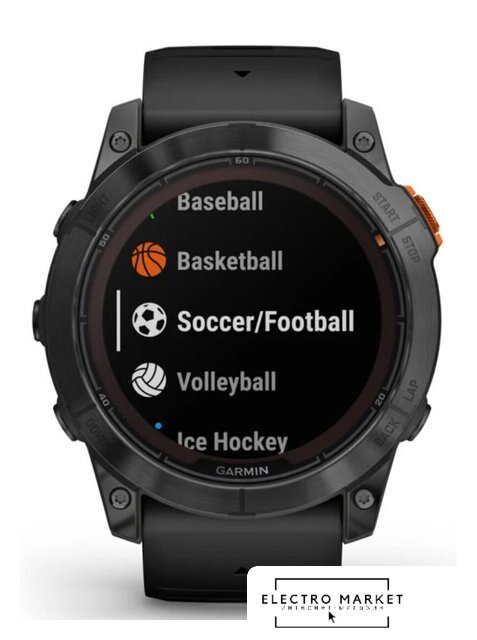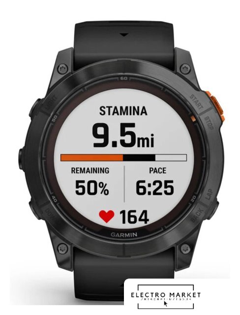 Профессиональные функции | анализ тренировочной нагрузки (Training Load/Training Load Focus), измерение частоты шага (Cadence), измерение длины шага (Stride Length), измерение времени контакта с землей (Ground Contact Time), измерение показателя уровня сложности трассы (Grit), измерение поддержки постоянной скорости (Flow), измерение состояния выносливости (Performance Condition), контроль темпа бега (Pace/PacePro), расчет кардиореспираторной подготовленности (VO2 Max), расчет времени восстановления (Recovery Time), расчет готовности к тренировке (Body Battery), расчет статуса вариабельности сердечного ритма (HRV), расчет прогресса тренировки (Training Status), расчет тренировочного эффекта (Training Effect), расчет тренировочного эффекта при плавании (SWOLF), построение обратных маршрутов (Tracback), прогноз времени гонки (Race Time Prediction), отображение уклона и усиления высоты подъема (ClimbPro Ascent Feature), оценка функциональной пороговой мощности (FTP), фиксация порога лактата/усталости (Lactate Threshold), фиксация отклонений на каждом шаге во время бега (Vertical Oscillation), данные о приливах, профили для виндсерфинга и кайтсерфинга, карты популярных маршрутов (Trendline), карты лыжных трасс (Resort Ski Maps) |