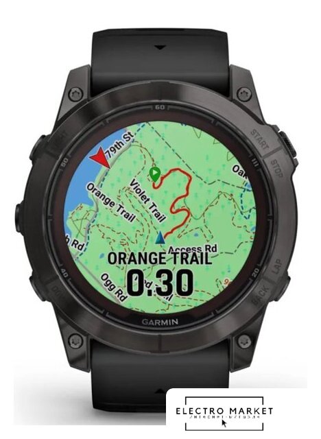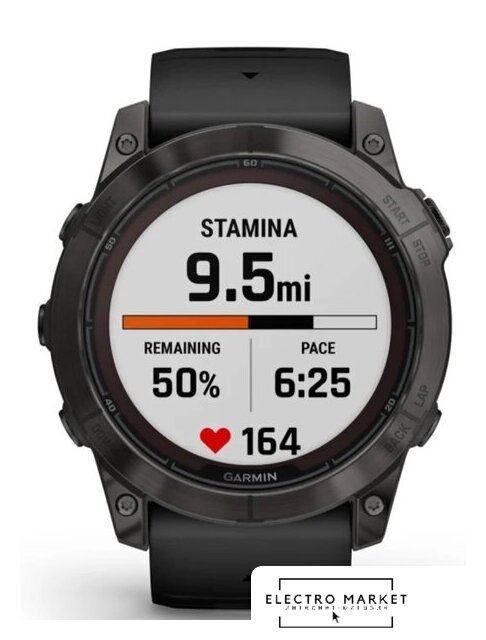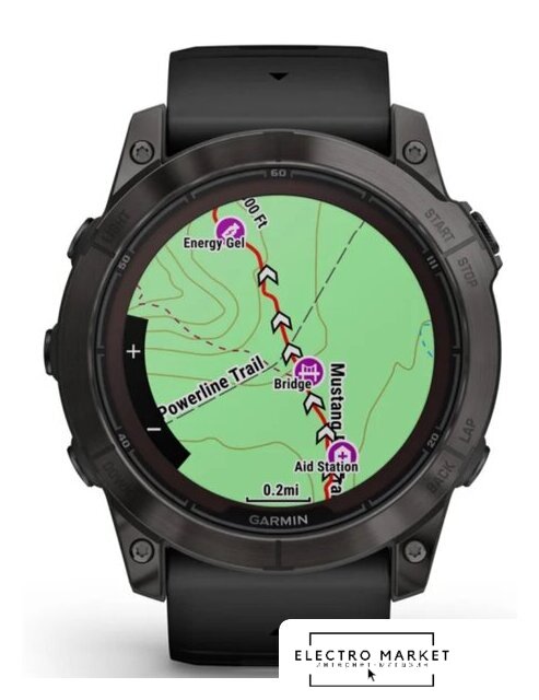 Профессиональные функции | анализ тренировочной нагрузки (Training Load/Training Load Focus), измерение частоты шага (Cadence), измерение длины шага (Stride Length), измерение времени контакта с землей (Ground Contact Time), измерение показателя уровня сложности трассы (Grit), измерение поддержки постоянной скорости (Flow), измерение состояния выносливости (Performance Condition), контроль темпа бега (Pace/PacePro), расчет кардиореспираторной подготовленности (VO2 Max), расчет времени восстановления (Recovery Time), расчет готовности к тренировке (Body Battery), расчет статуса вариабельности сердечного ритма (HRV), расчет прогресса тренировки (Training Status), расчет тренировочного эффекта (Training Effect), расчет тренировочного эффекта при плавании (SWOLF), построение обратных маршрутов (Tracback), прогноз времени гонки (Race Time Prediction), отображение уклона и усиления высоты подъема (ClimbPro Ascent Feature), оценка функциональной пороговой мощности (FTP), фиксация порога лактата/усталости (Lactate Threshold), фиксация отклонений на каждом шаге во время бега (Vertical Oscillation), данные о приливах, профили для виндсерфинга и кайтсерфинга, карты популярных маршрутов (Trendline), карты лыжных трасс (Resort Ski Maps) |