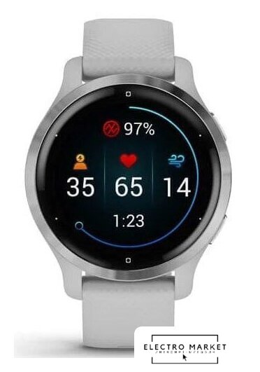 синхронизация с Android/iOS, экран AMOLED 1.4", поддержка SIM-карты: нет, пульсометр, измерение кислорода в крови, GPS, корпус: пластик/металл (титан), ремешок: силикон